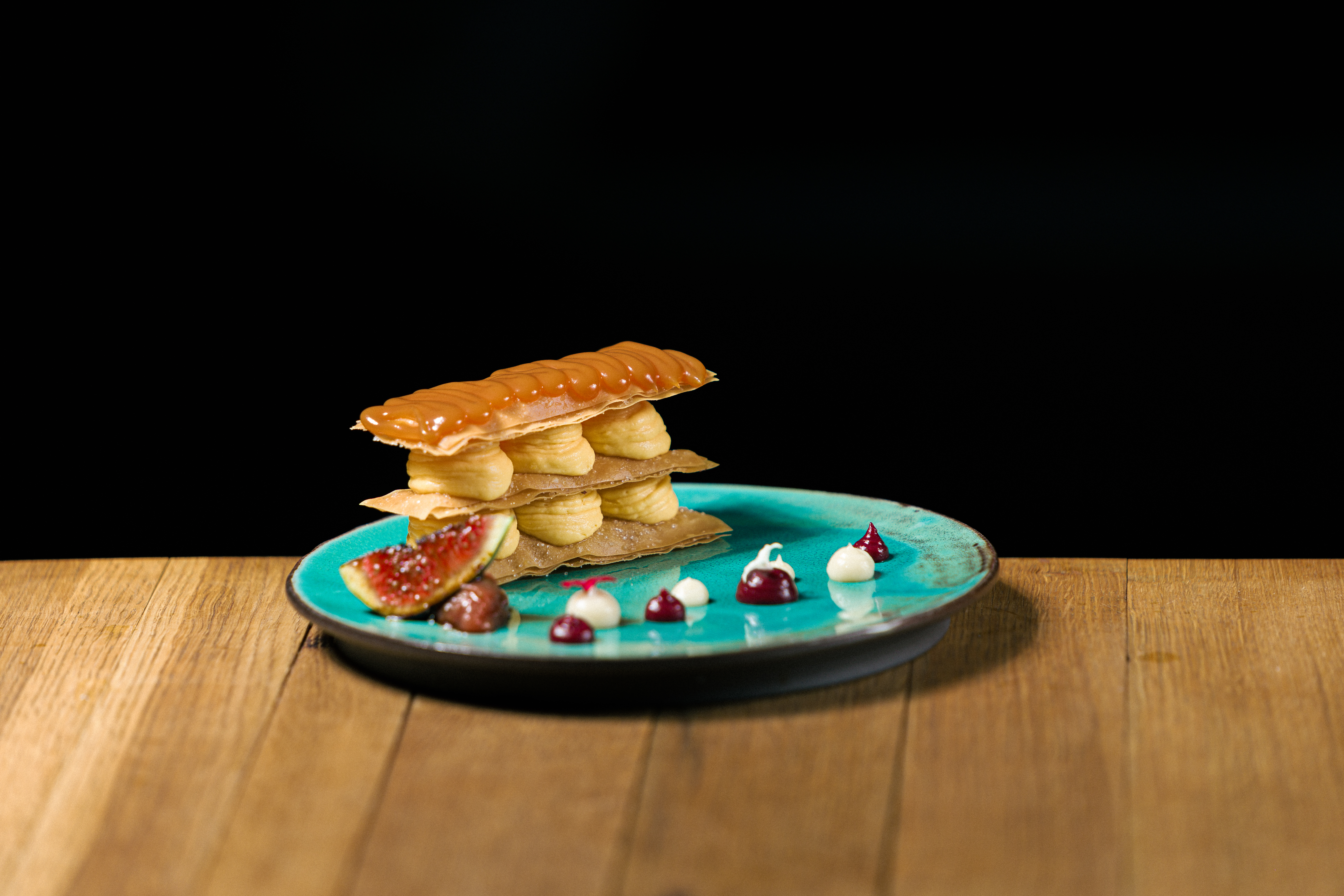 Dűlő házi krémes, sós karamell, szezonális gyümölcsök